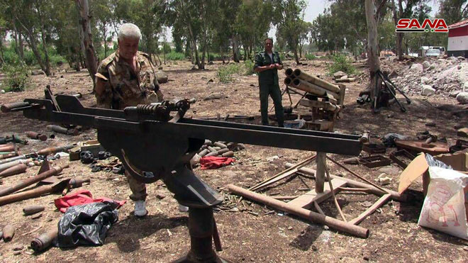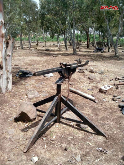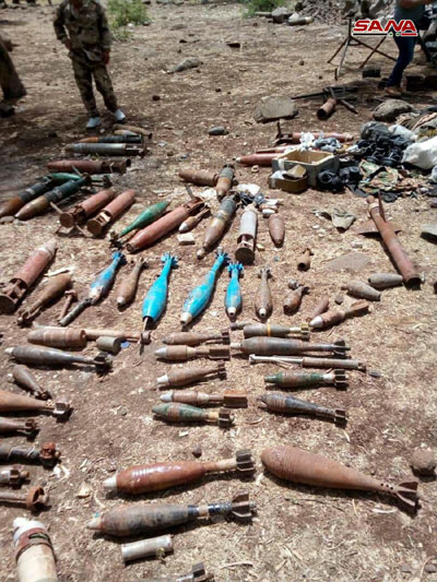 Le correspondant de guerre de SANA a fait savoir que les services compétents, en collaboration avec les habitants, avaient continué le ratissage du village de Ghanto au nord de Homs, et découvert des mitrailleuses, des mines, des roquettes, des lance-roquettes et des obus de mortier, abandonnés par les terroristes avant leur évacuation vers le nord de la Syrie.