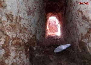 Le correspondant de guerre de SANA a fait noter que les services compétents, alors qu’ils ratissaient la banlieue nord de Homs, avaient découvert un réseau de tunnels et de tranchées, creusé par les terroristes au-dessous des écoles, des maisons et des fermes des citoyens dans la localité de Termaala.