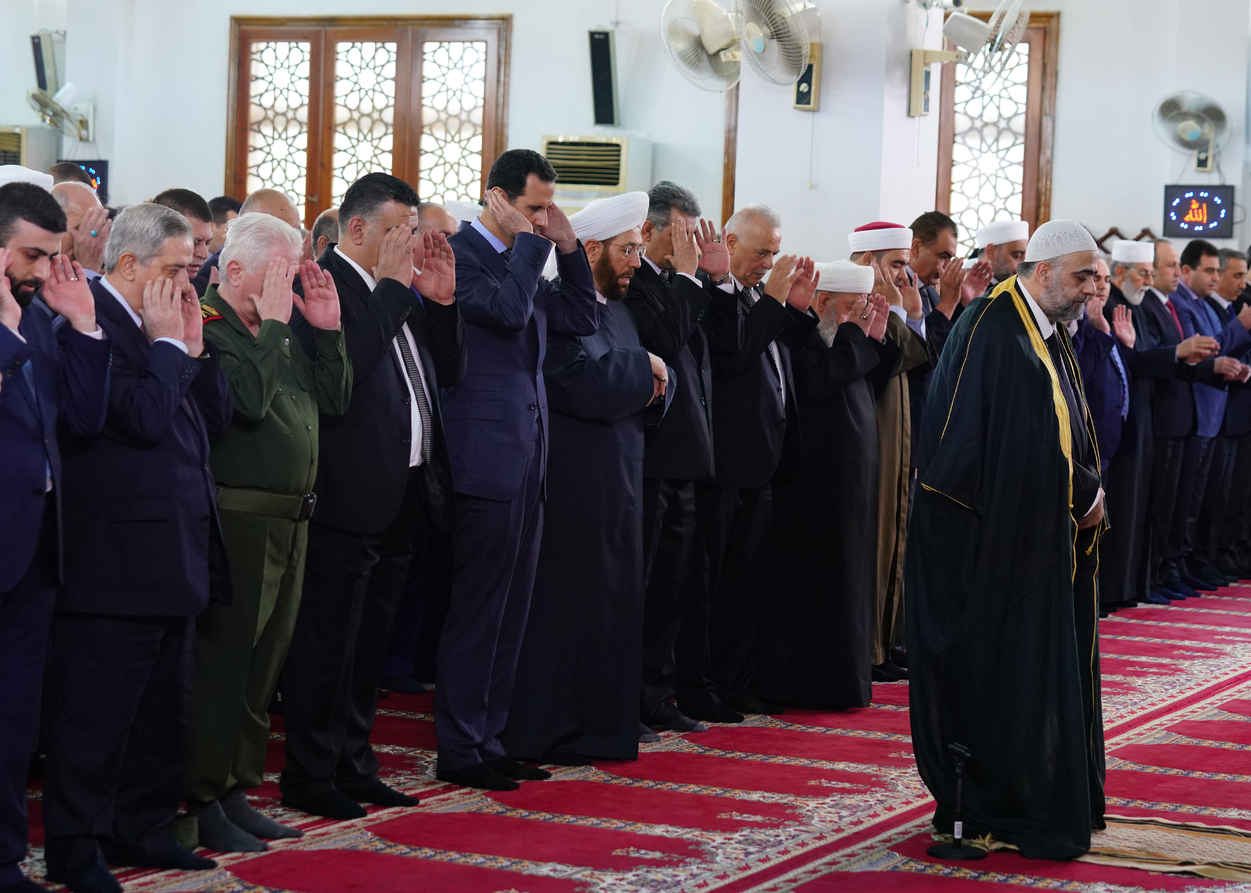 Le président al-Assad fait la prière de l’Aïd al-Fitr dans la moqué de Sayyedeh Khadijeh à Tartous