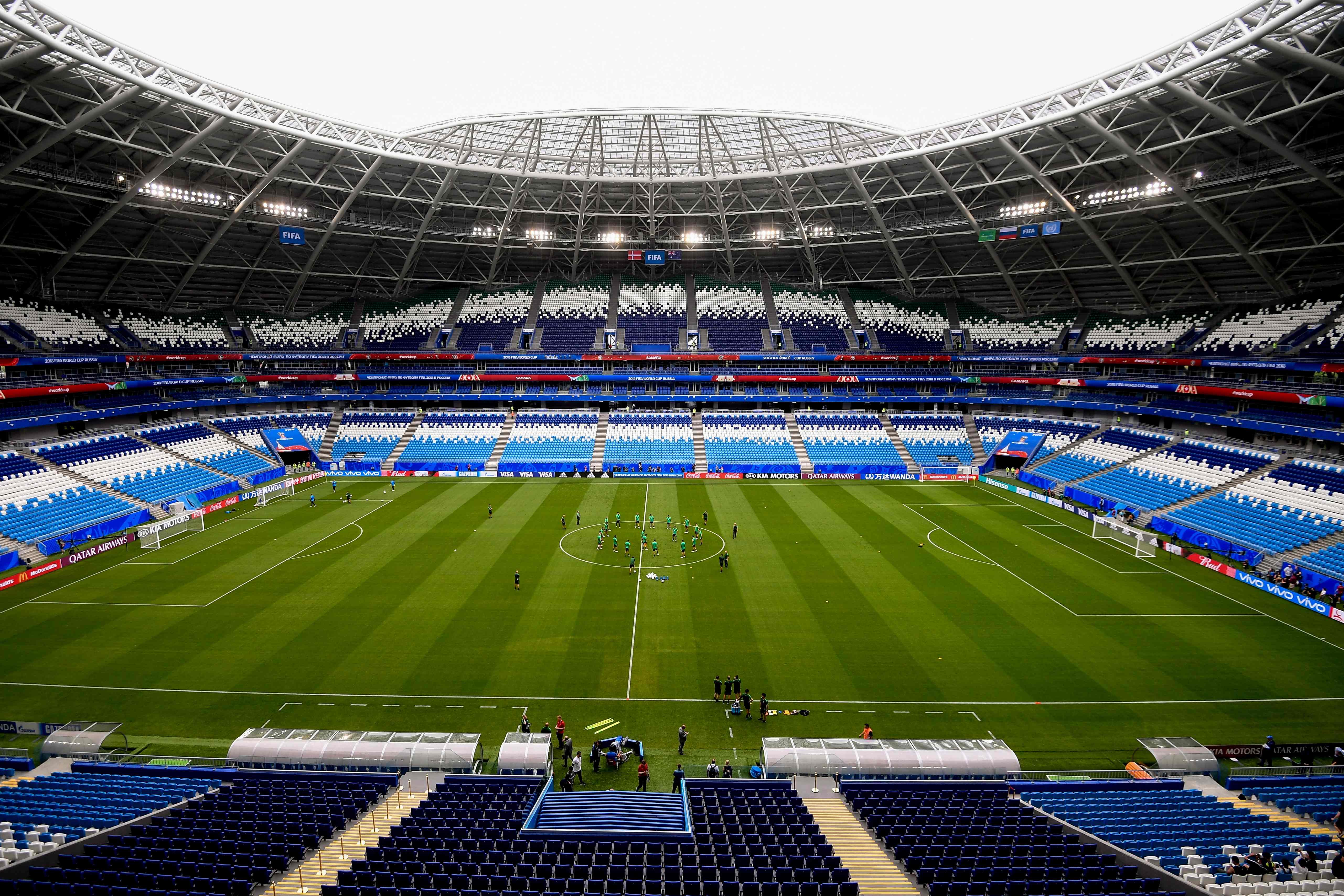 Australian players take part to a training session at the Samara Arena in Samara on June 20, 2018 on the eve of the Russia 2018 World Cup Group C football match between Denmark and Australia.
