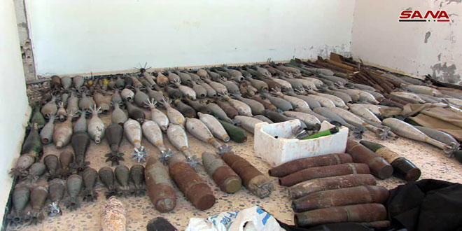 Homs/ Dans le cadre de la sécurisation des villages, des localités, des fermes et des terrains agricoles dans la banlieue nord de Homs, les services compétents ont poursuivi le ratissage de la zone de Houla et y ont découvert des engins explosifs et différents obus abandonnés par les terroristes.