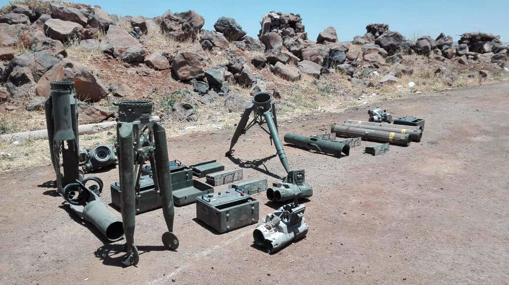 11/07/2018 Les armes et les munitions abandonnées par les terroristes et découvertes par l'armée arabe syrienne dans la zone de Gharaz dans la banlieue de Daraa 2018-07-11 admin Share tweet