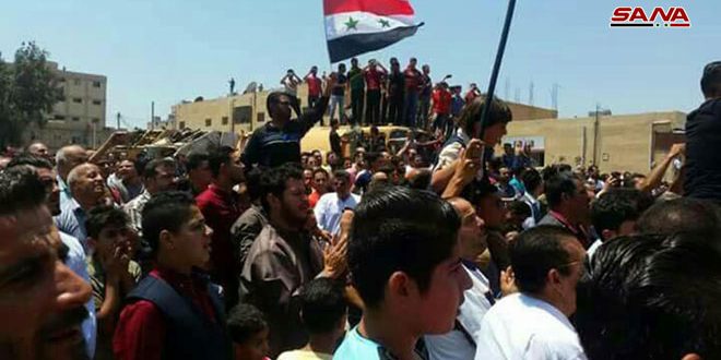 Le correspondant de SANA a fait savoir que les participants au rassemblement avaient réclamé aux groupes armés de déposer leurs armes et d’adhérer à l’armée arabe syrienne dans sa guerre contre tous ceux qui tentent de déstabiliser la Syrie.