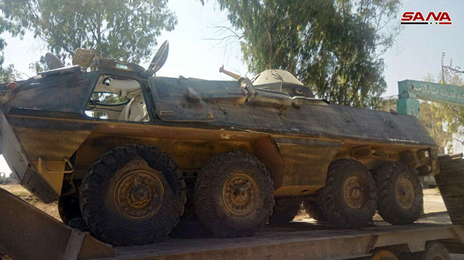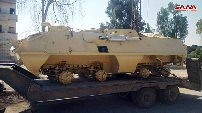 Le correspondant de guerre de Sanaa a affirmé qu’une nouvelle partie d’armes lourdes et moyennes des terroristes dans la zone de Daraa al-Balad, dont un char, un blindé, un véhicule de fabrication britannique et un canon, avaient été livrés aujourd’hui, ajoutant que l’opération se poursuivra jusqu’à l’achèvement de la livraison des armes lourdes et moyennes dans le cadre de l’accord précité.