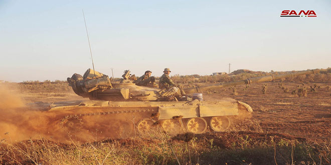 Daraa/ Une source militaire a affirmé à SANA que des unités de l’armée arabe syrienne avaient poursuivi leurs opérations militaires contre les réseaux terroristes qui se déploient dans les villages et les localités de la banlieue nord-ouest de Daraa et avaient libéré la localité de Mal et Tell Mal, après y avoir éliminé les derniers rassemblements des terroristes.