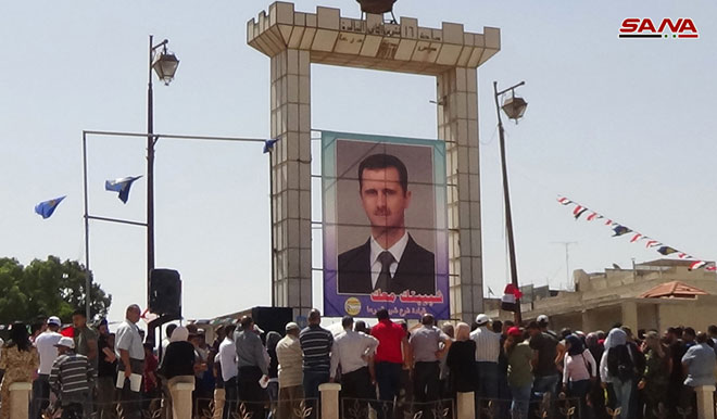 Les participants qui s’étaient rassemblés sur la place de 16 Tichrine au centre-ville de Daraa, ont exprimé leur joie de les sauver des obus des groupes terroristes, et scandé des slogans appréciation les sacrifices et l’héroïsme de l’armée arabe syrienne dans sa guerre contre le terrorisme.