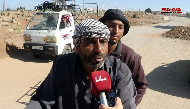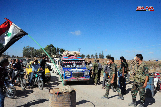 28/07/2018 Retour des centaines de personnes à leurs maisons dans la ville de Jeline dans la banlieue de Daraa quelques heures après sa libération 2018-07-28 dima Share tweet