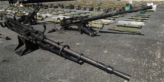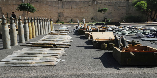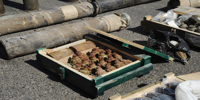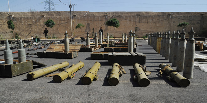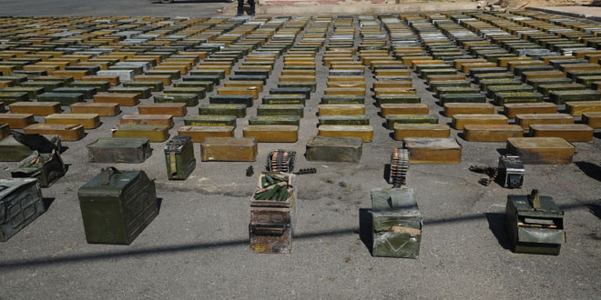 09/08/2018 Related Articles Découverte d’armes et de munitions abandonnées par les terroristes dans la banlieue de Quneitra 31/05/2019 Découverte d’armes et de munitions, dont des missiles de fabrication américaine, abandonnées par les terroristes dans la région sud 22/12/2018 Découverte d’armes et de munitions abandonnées par les terroristes dans la banlieue nord de Homs 27/11/2018 abandonnées par les terrorises dans la zone de Harah dans la banlieue de Daraa Découverte d’armes et de munitions dont des roquettes de fabrication américaine et israélienne 2018-08-09 dima Share tweet