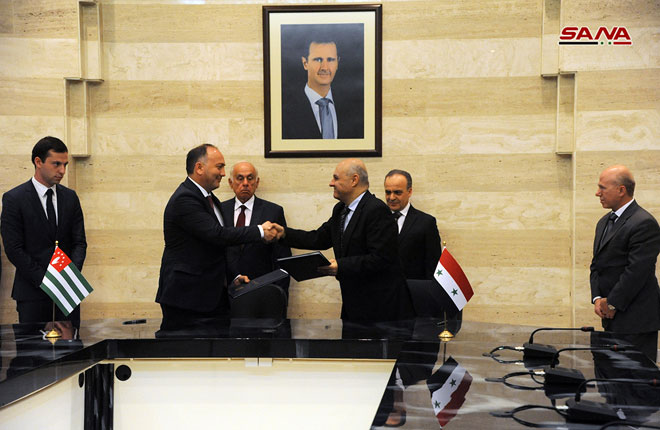 Damas / La République arabe syrienne et la République d’Abkhazie ont signé aujourd’hui dans le bâtiment de la présidence du Conseil des ministres deux accords de coopération.