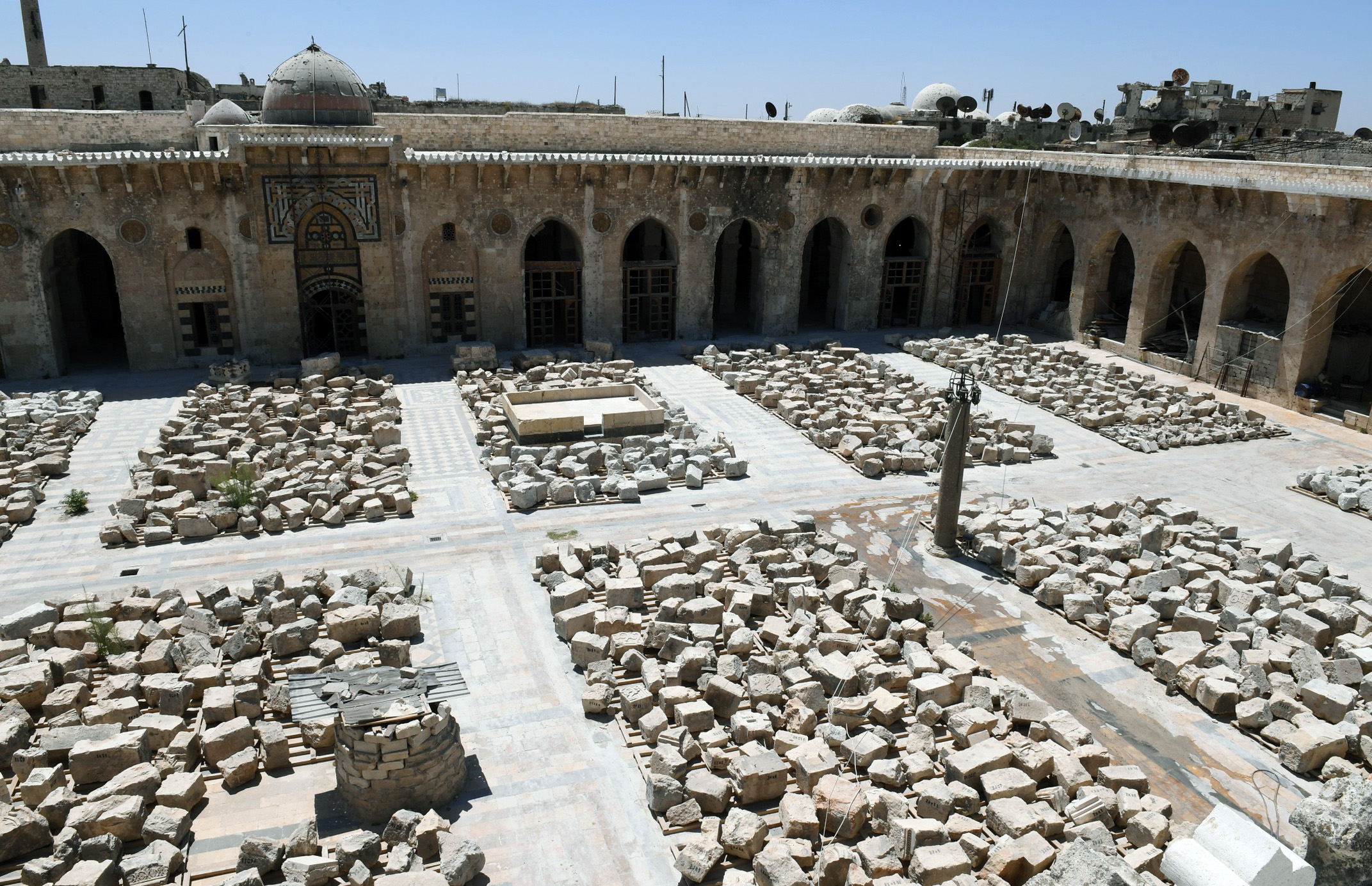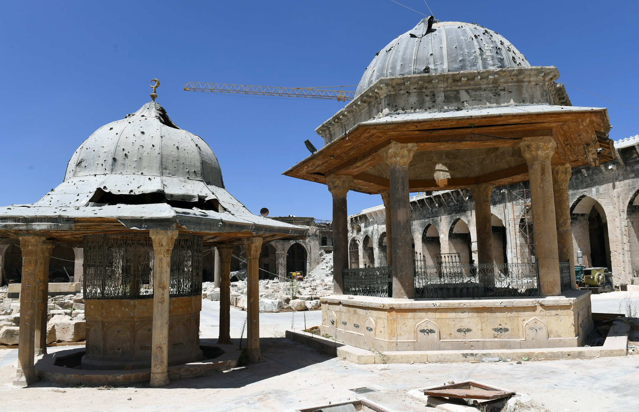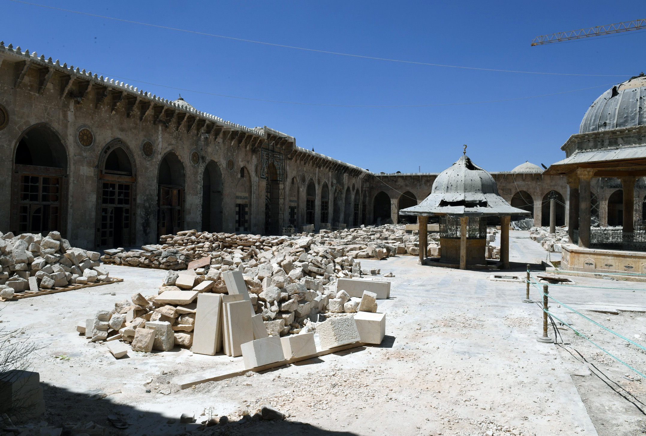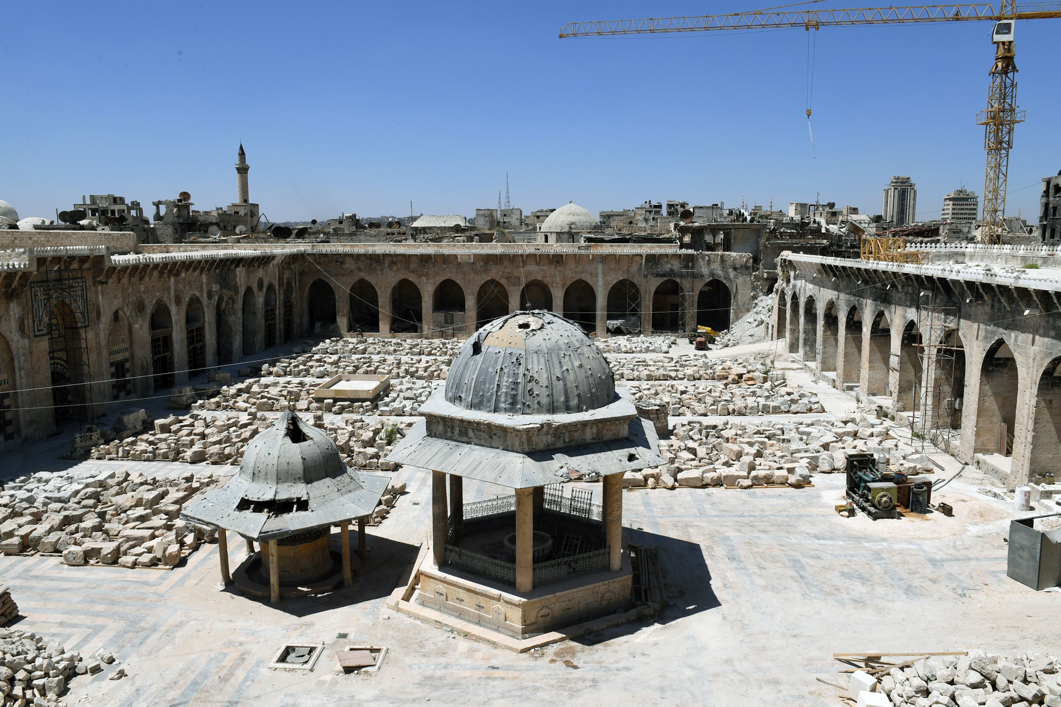 Les équipes d’architectes continuent la restauration de la mosquée des Omeyyades à Alep