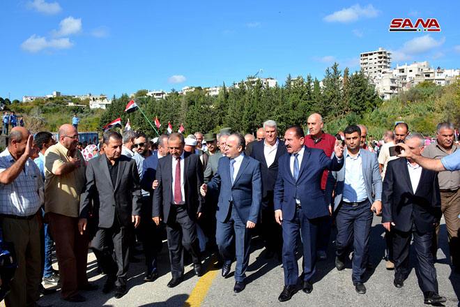 Lattaquié / Sur directives du président Bachar al-Assad, le président du Conseil des Ministres, Imad Khamis, a poursuivi sa visite au gouvernorat de Lattaquié et y a inauguré aujourd’hui des projets routiers dans les deux villes de Heffeh et Jableh et le bâtiment de la faculté de dentisterie à l’université de Tichrine d’un montant total dépassant les 11 milliards L.S.