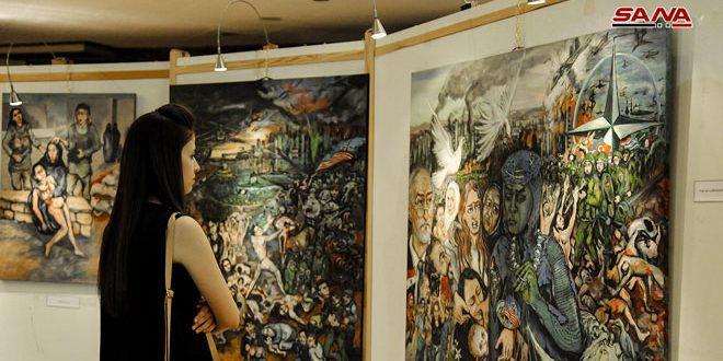 La plasticienne allemand a concrétisé par ses tableaux la guerre médiatique et la conspiration occidentale contre la Syrie et la souffrance de la population mais la plupart de ses tableaux étaient consacrés aux martyrs de de l’armée intrépide, en vue de transmettre des messages clairs au monde et à l’Occident sur l’injustice et le mensonges systématique contre la Syrie.