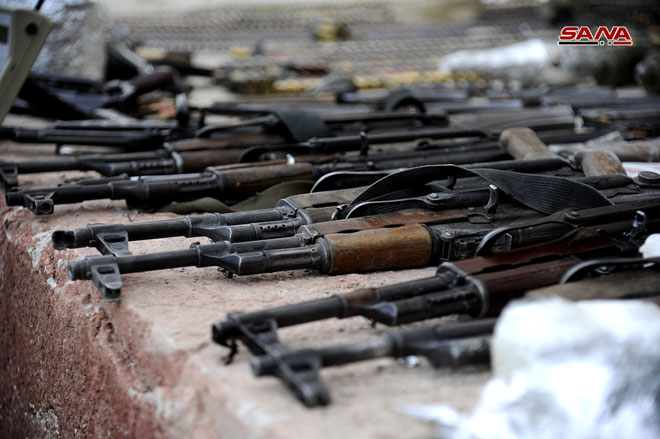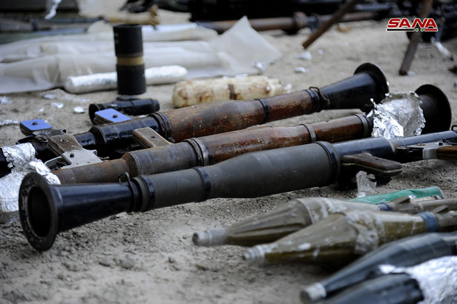 Dans une déclaration au correspondant de SANA, un officier des services compétents a fait noter qu’en collaboration avec les habitants, de grandes quantités d’armes et de munitions, dont certains sont de fabrication américaine, enterrées dans une ferme où les terroristes se trouvaient, avaient été découvertes à Yalda dans la banlieue de Damas.