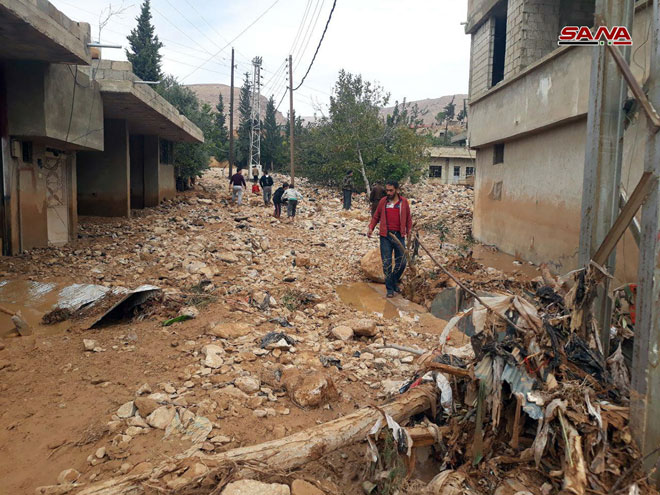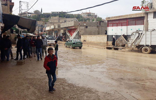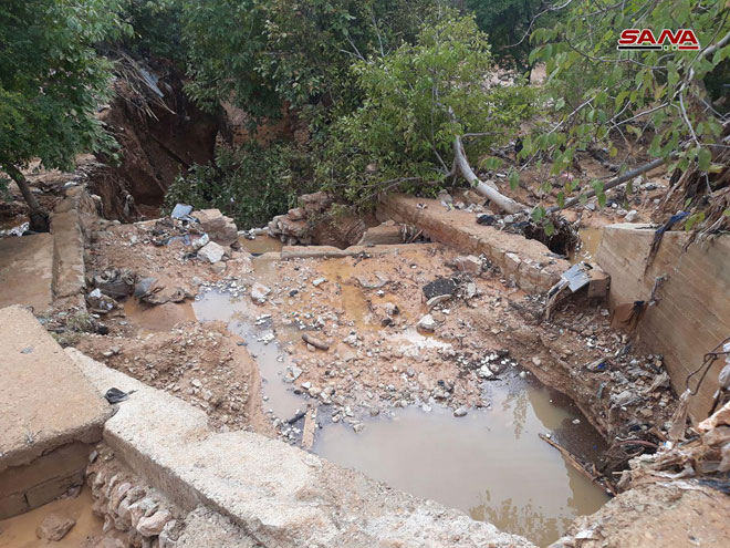 22/10/2018 Les dégâts matériels dans nombre de localités de la banlieue de Damas à la suite des torrents 2018-10-22 dima Share tweet
