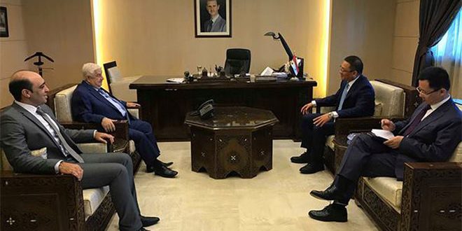 Damas / Le ministres des AE et des Expatriés, Walid Mouallem, a reçu aujourd’hui séparément l’ambassadeur de Chine, Feng Biao, et l’ambassadeur de Cuba, Miguel Porto Parga.
