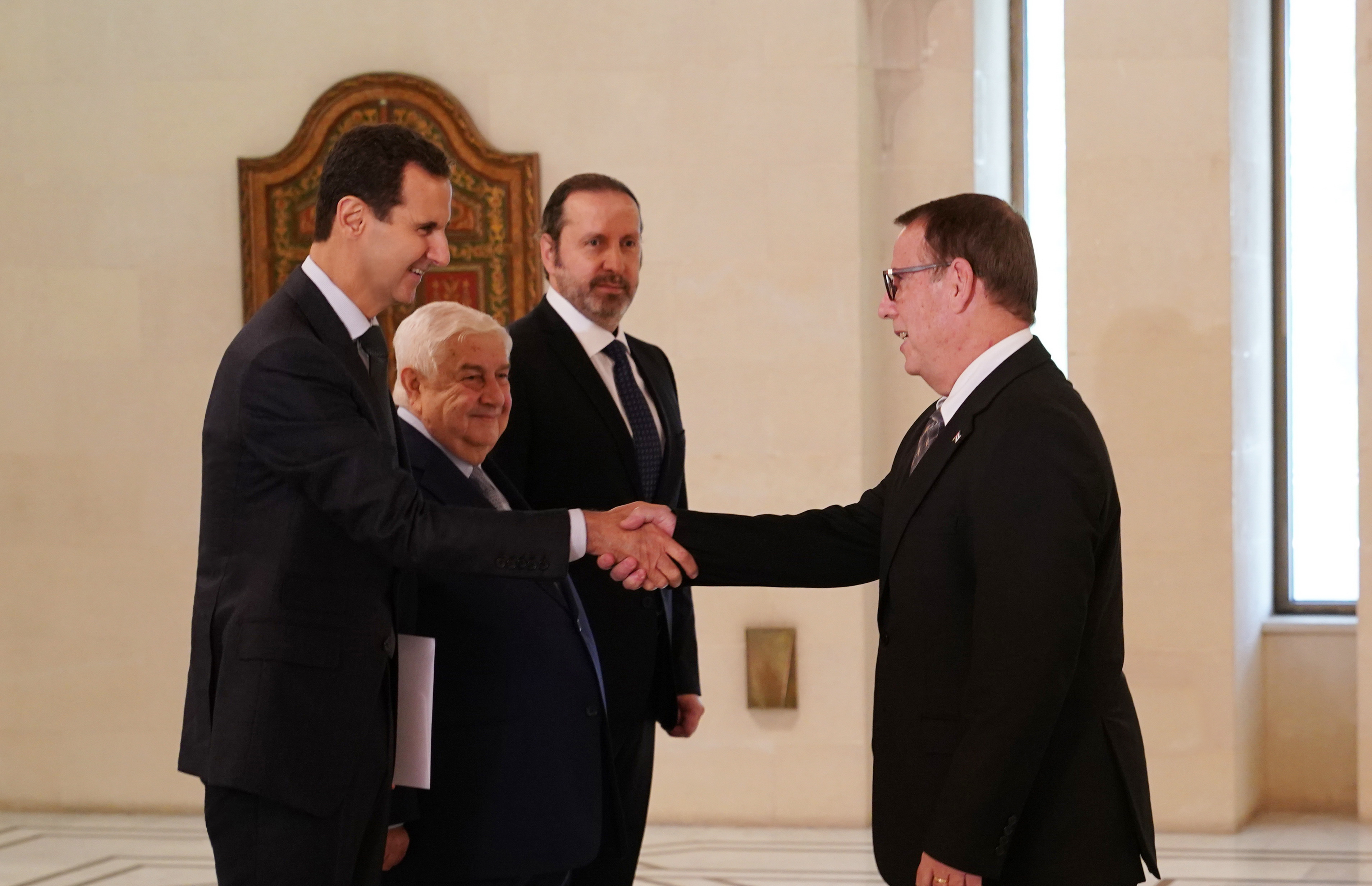 Damas / Le président Bachar al-Assad a accepté aujourd’hui les lettres de créance de Feng Biao, comme ambassadeur de Chine, et Miguel Porto, comme ambassadeur de Cuba, en République arabe syrienne.