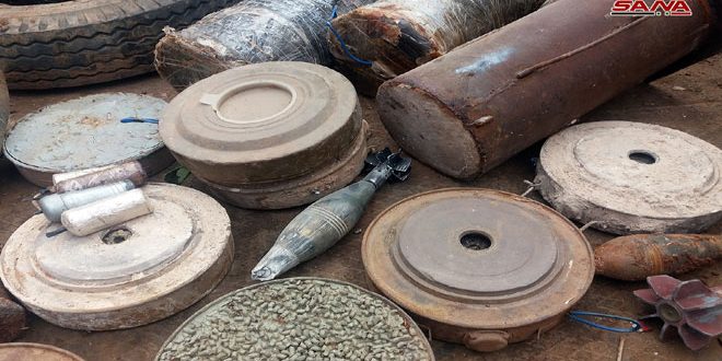Le correspondant de SANA a indiqué que les sapeurs avaient trouvé des engins explosifs, des mines et des obus abandonnés par les terroristes et qui étaient dissimilés dans une station de traitement des eaux usées, ainsi que dans un dépôt sous terrain et les terres agricoles dans le zone entre les deux villages de Beit Saber et Beit Tima au sud-ouest de Damas.
