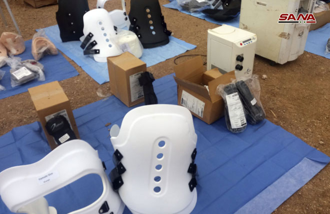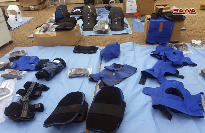 Le correspondant de SANA a indiqué que les armes incluent des missiles, des divers missiles antichars, des mitrailleuses moyennes de 23 et 14 mm, des appareils de communication et des véhicules volés, ainsi que des médicaments, du matériel médical et de la nourriture de fabrication israélienne, américaine et britannique.
