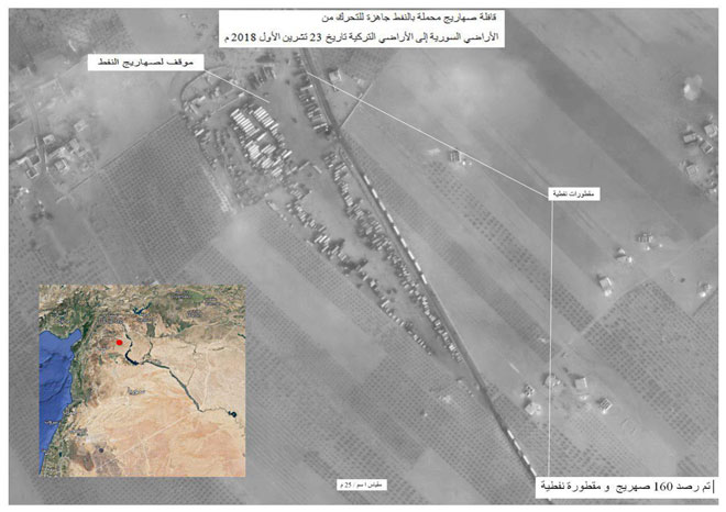Damas-SANA / De nouvelles images prises par les satellites et les avions de reconnaissance russes ont montré des camions-citernes des groupes terroristes, qui se déploient à l’est du fleuve de l’Euphrate, trafiquent le pétrole syrien en direction de la Turquie et de l’Irak.
