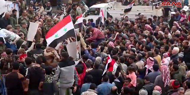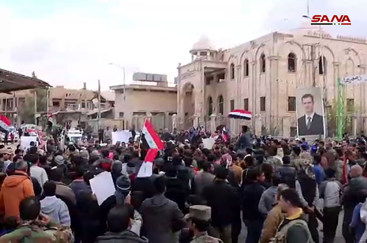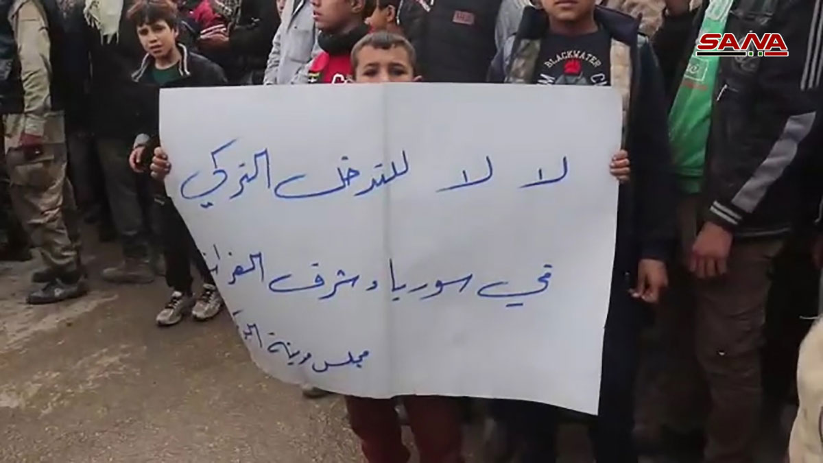 Les habitants de la ville ont défilé dans les rues de la villes en hissant des drapeaux de la patrie et des photos du président Bachar al-Assad et en scandant des slogans dénonçant l’agression turque contre les territoires syriens et le soutien qu’apporte la Turquie aux réseaux terroristes.