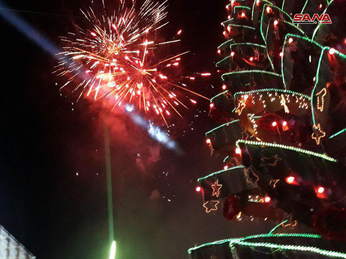 Banlieue de Damas-SANA/En présence de personnalités officielles et populaires, un sapin de Noël, de 33 m de hauteur, a été illuminé dans le monastère de Notre-Dame à Seidnaya.