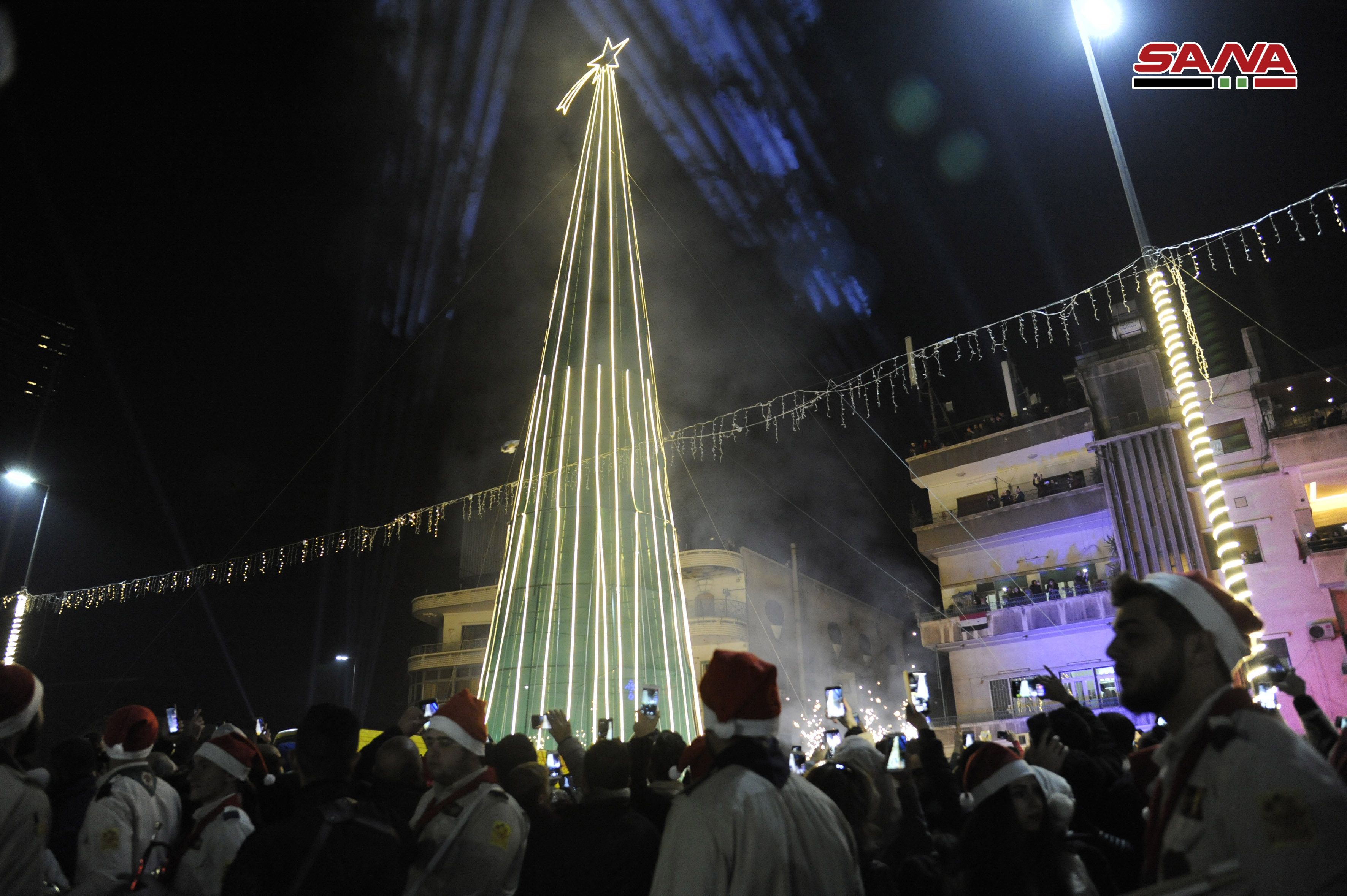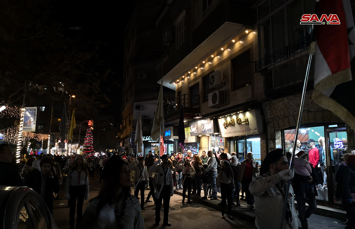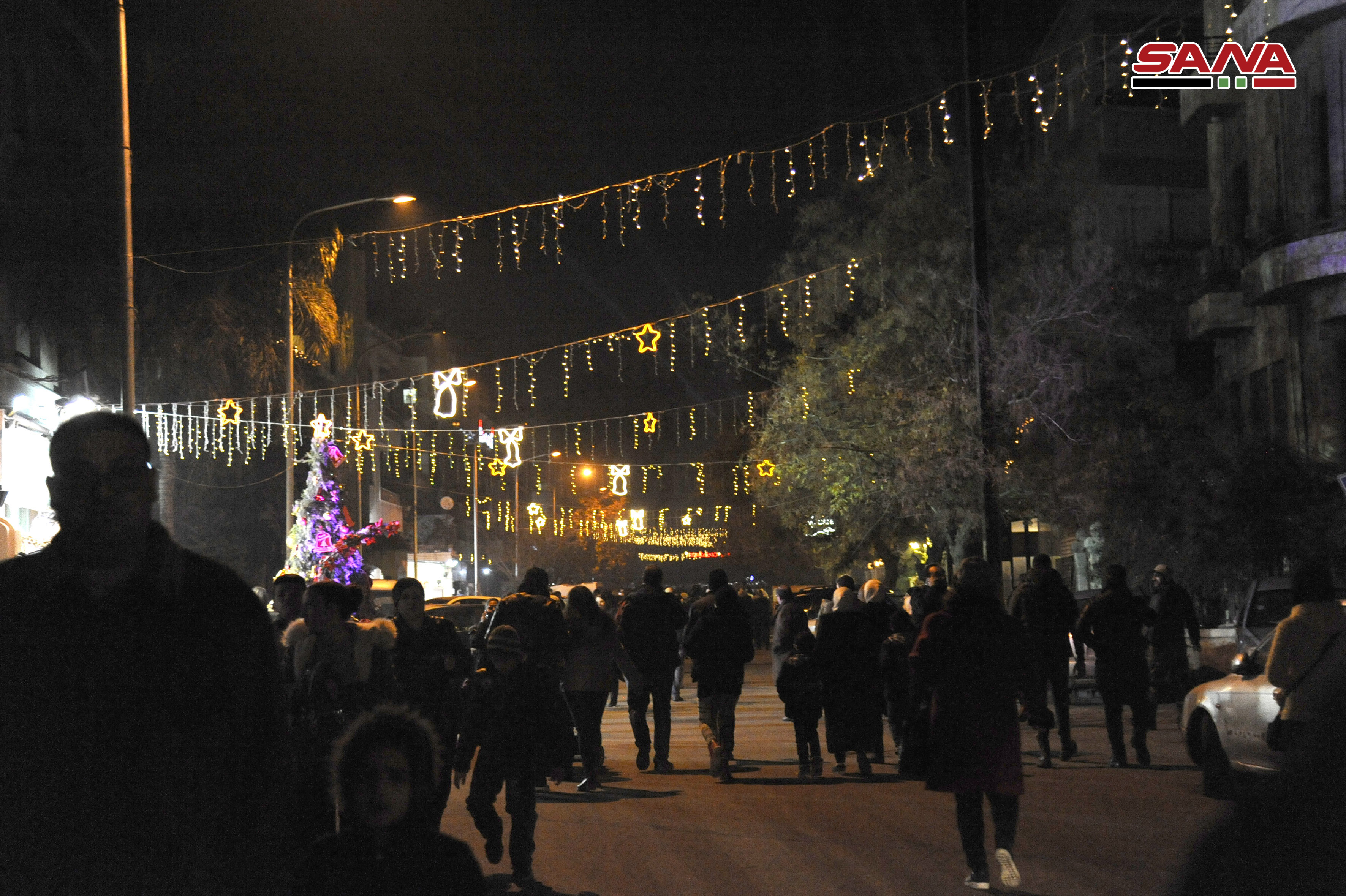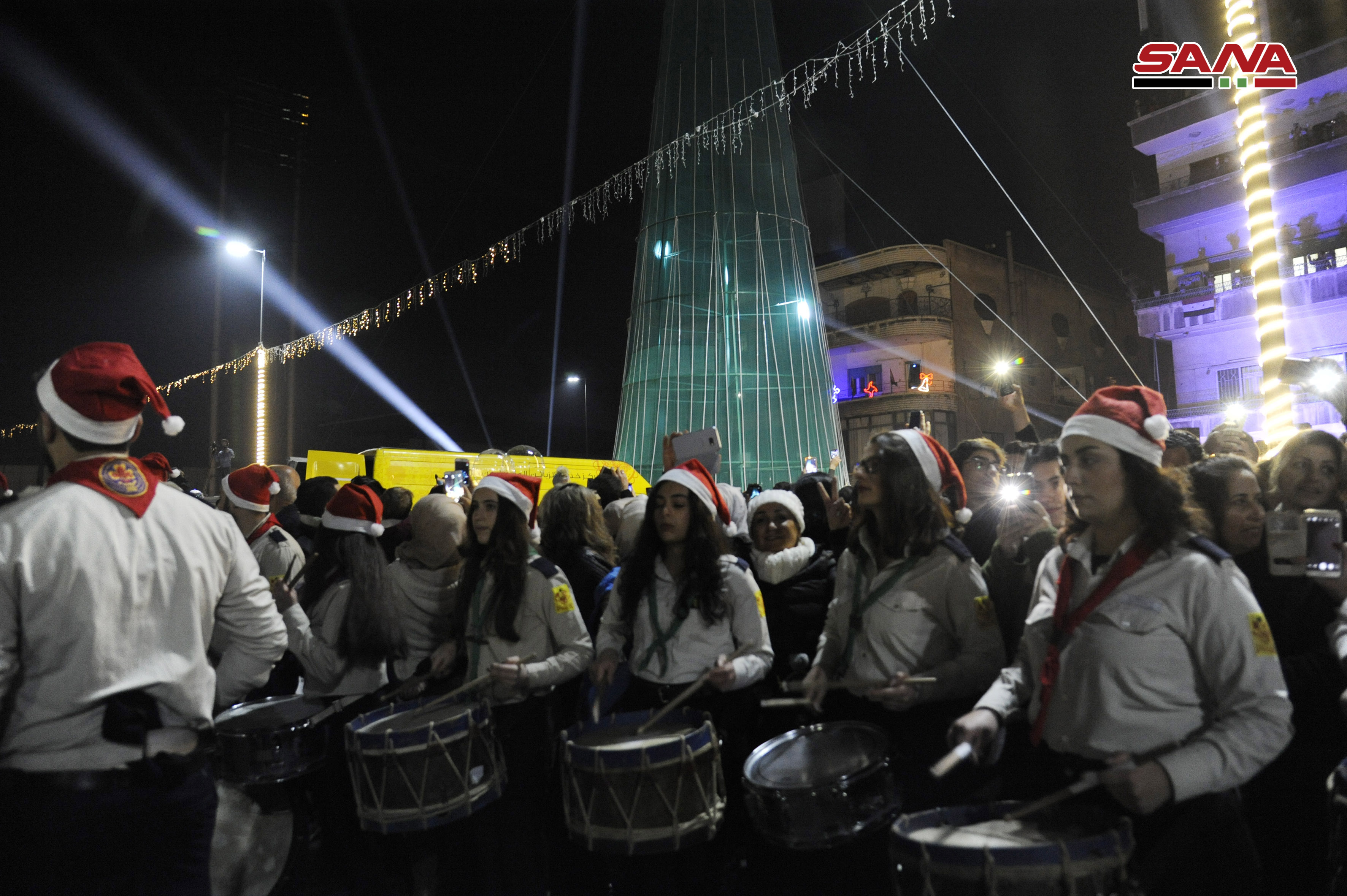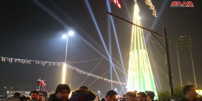 Damas-SANA / A l’occasion des fêtes de Noël et de Nouvel an, le projet « Action » a organisé le « Carnaval de Noël » qui a inclus l’illumination du plus haut sapin de Noël dans la ville de Damas, dont la hauteur atteint 30 mètres, sur la place d’al-Abbassiyne à Damas.