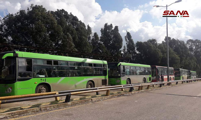 Les correspondants de SANA dans les trois postes ont fait noter que des autobus syriens étaient entrés via les points frontaliers de Zamrani, Jdaidet Yabous et Dabboussieh venant du territoire libanais et transportant à bord des centaines de citoyens, dont des femmes et des enfants, qui avaient été déplacés de leurs maisons par les réseaux terroristes.