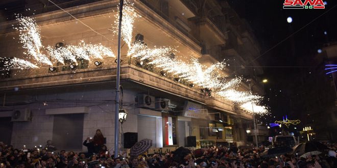 Illumination du sapin de Noël dans le quartier de Aziziyah à Alep