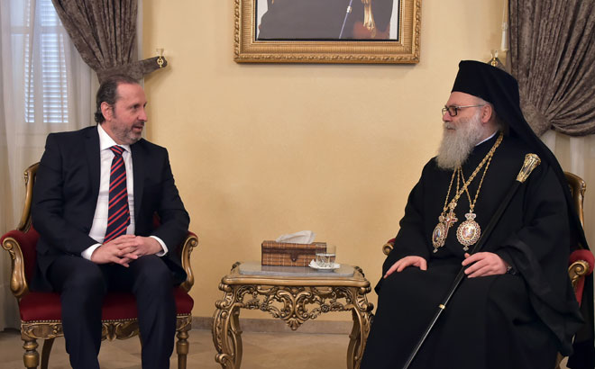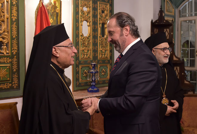 Le ministre Azzam a également visité le patriarcat des grecs catholiques et présenté au patriarche Youssef Absi, patriarche d’Antioche et de tout l’Orient pour les grecs-catholiques melkites les félicitations du président al-Assad à cette occasion.
