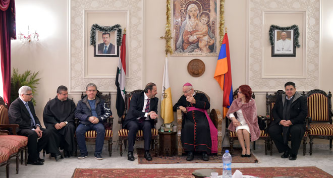 Dans l’archevêché des Arméniens catholiques, le ministre Azzam a présenté les félicitations du président al-Assad à l’archevêque Joseph Arna’outi, pour la fête de Noël.