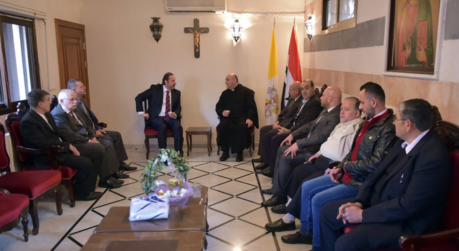 Azzam a visité le couvant de Latin à Damas et transmis au père Bahjat Qarqach, chef du couvant, les félicitations du président al-Assad.