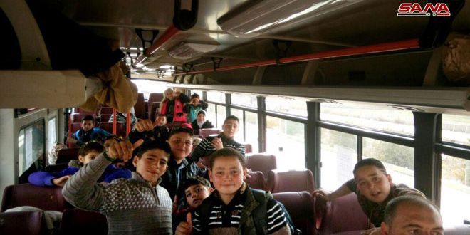 Damas -SANA / Des dizaines de Syriens déplacés, dont des enfants et des femmes, sont revenus aujourd’hui en Syrie venant des camps des réfugiés en Jordanie via le poste frontalier de Nassib, en prélude de les transporter à leurs localités et villages libérés du terrorisme par l’armée arabe syrienne.