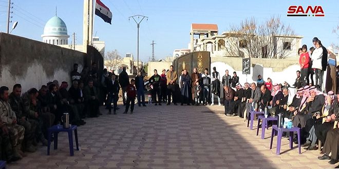 Daraa-SANA / Les participants à la rencontre nationale des tribus syriennes, organisée dans le village de Gharya Charqya dans la banlieue de Daraa, ont affirmé leur rejet de toute présence étrangère illégale en Syrie et leur attachement aux constantes nationales et à la souveraineté de la Syrie sur tous ses territoires.