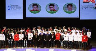 07/01/2019 Related Articles Sous le haut patronage de Mme Asmaa al-Assad, hommage aux gagnants dans les compétitions de l’Olympiade scientifique syrienne pour l’an 2018/2019 06/01/2019 hommage aux gagnants dans les compétitions de l’Olympiade scientifique syrienne pour l’an 2018/2019 Sous le haut patronage de Mme Asmaa al-Assad 2019-01-07 admin Share tweet