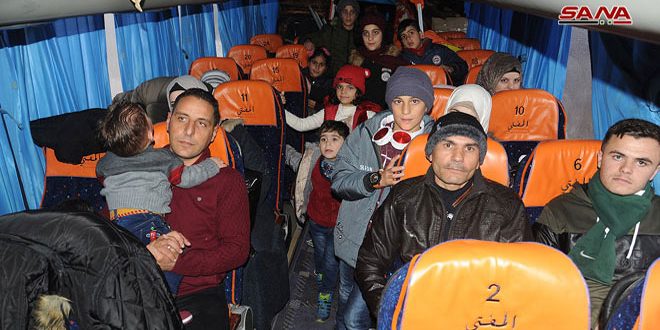 Daraa – SANA/Plus de 400 personnes déplacées en raison du terrorisme ont regagné la Patrie venant de la Jordanie via le poste frontalier de Nassib.