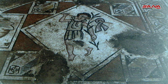 Daraa-SANA / Une fresque de mosaïque splendide, composée d’images de forme géométrique, de végétations, d’animaux et d’êtres humains, se trouve dans l’église de « Hayt » dans la banlieue ouest de Daraa.