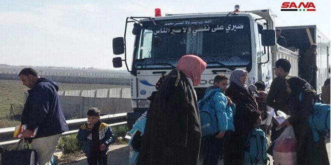 La correspondante de SANA a affirmé que les parties concernées dans le gouvernorat avaient assuré aux familles syriennes venant de la Jordanie des autobus pour les transporter à leurs zones libérées du terrorisme.
