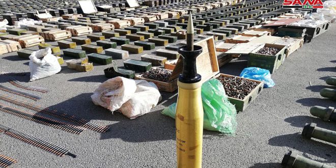 Dans une déclaration à SANA, une source des services compétents a indiqué que pendant le ratissage des zones purifiées par l’armée du terrorisme, les services compétents avaient découvert de grandes quantités d’armes et de munitions abandonnées par les réseaux terroristes dans le gouvernorat de la banlieue de Damas et dans sa périphérie.