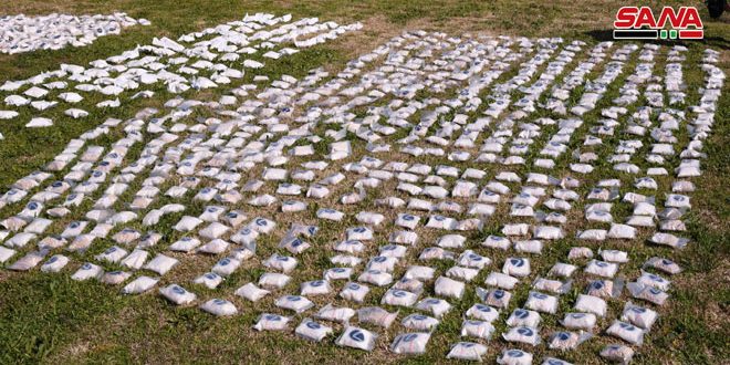 Banlieue de Damas-Sana/ Une patrouille des services compétents a dressé une embuscade bien montée et pris d’assaut un lieu où se trouvent des trafiquants ayant en leur possession des grandes quantités de comprimés de Captagon et de stupéfiants.