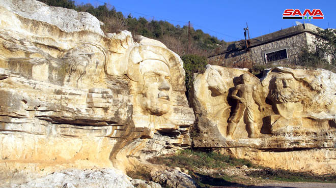 Tartous-SANA / Une sculpture en roche a été faite dans le village de Bremanet Machayekh pour éterniser dans un panorama le Cheikh Khalil Khattib et ses camarades qui avaient pris part à l’expulsion du colonialiste français de la patrie.