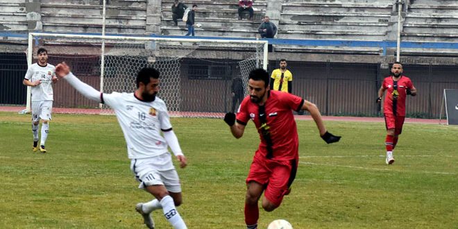 Le match des deux équipes de Jaych et Wathba dans le cadre du 15e tour de la ligue syrienne de football
