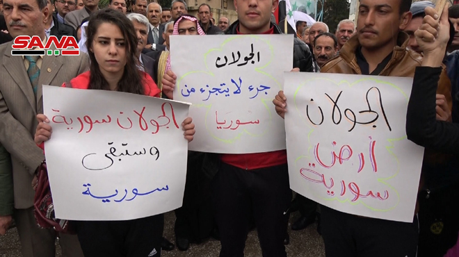 Lors d’un autre sit-in organisé devant le centre culturel arabe à Hassaké, les paysans de Hassaké ont affirmé leur condamnation des positions de l’administration américaine envers le Golan syrien occupé, faisant savoir que le peuple syrien ne renoncera jamais au Golan.