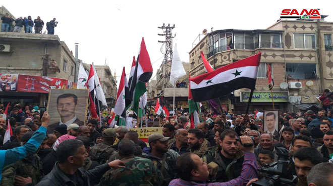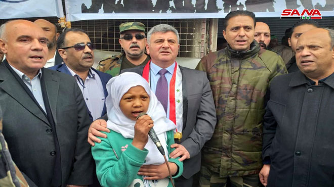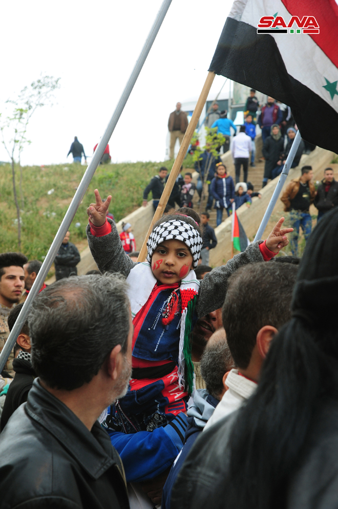 Les participants aux marches ont scandé des slogans et porté les deux drapeaux nationaux, Syrien et palestinien et des pancartes qui confirment que l’occupation ne durera pas pour jamais et que les droits des peuples arabes dans les territoires arabes occupés par l’entité d’occupation israélienne ne seront jamais abandonnés.