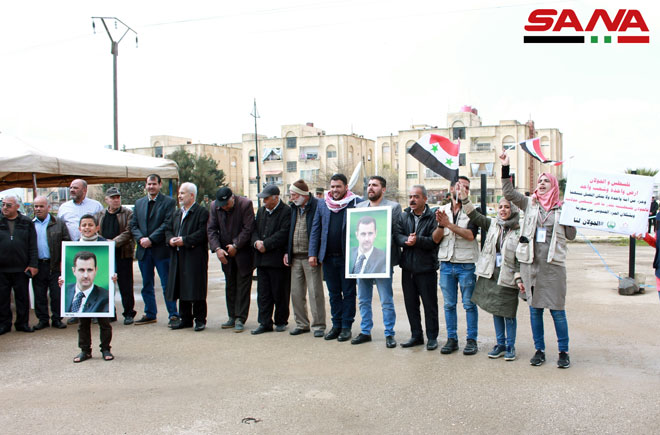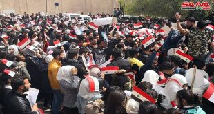 Par ailleurs, un autre sit-in a été observé dans la ville de Baas à Quneitra en signe de condamnation de la proclamation de Trump sur le Golan syrien occupé et en signe de solidarité avec nos compatriotes au Golan.