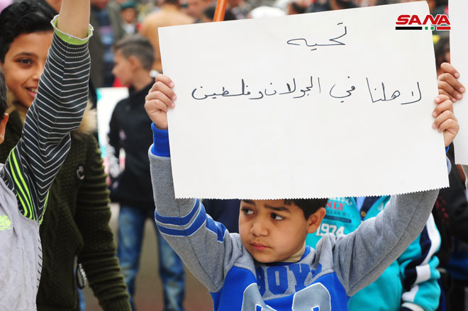 Les participants ont assuré que le Golan restera toujours arabe syrien et dénoncé la proclamation de Trump qui a eu lieu après l’échec de son plan terroriste et après les victoires réalisées par la Syrie sur les réseaux terroristes.