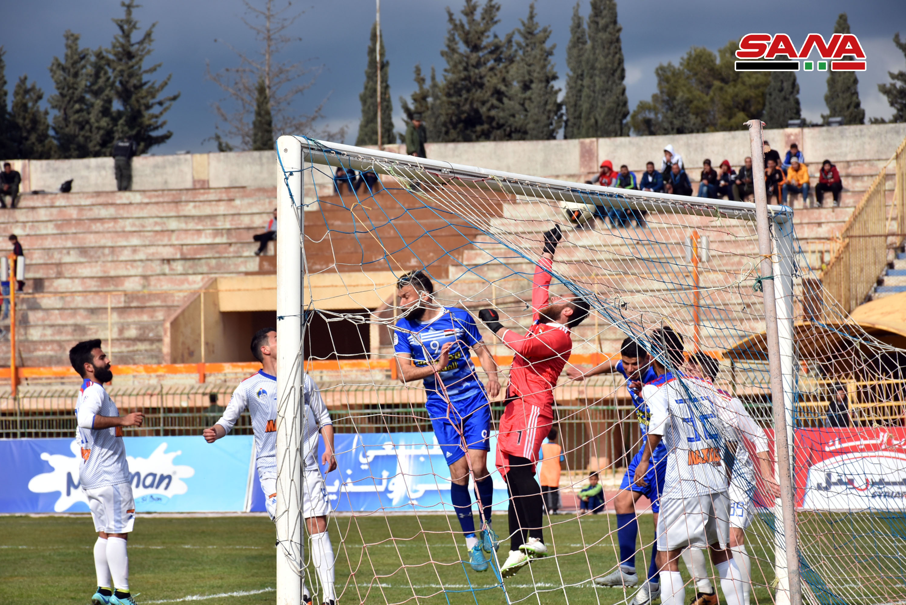 Le match entre les deux équipes de Nawair et Herafine Alap à l’ouverture du 20e tour de la Ligue syrienne de football