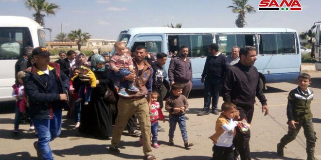 Daraa-Sana/Une nouvelle partie de Syriens déplacés ont regagné la Syrie via le poste-frontalier de Nassib, venant des camps des réfugiés en Jordanie, pour s’orienter à leurs localités et villages libérés du terrorisme par l’armée.