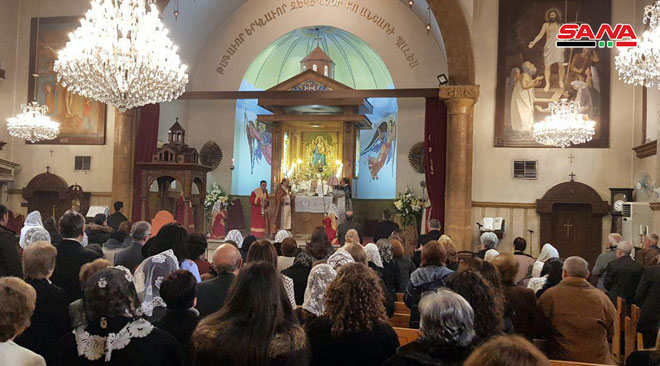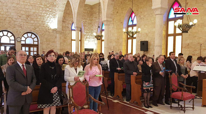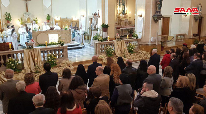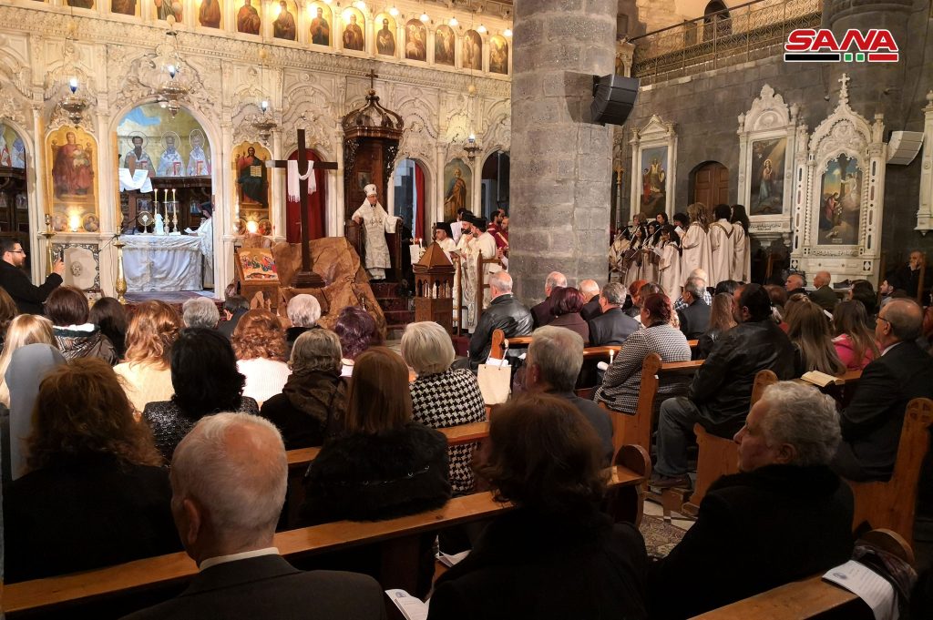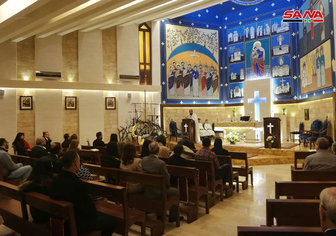 A Damas, une grande messe a été organisée à la Cathédrale des Grecs melkites catholiques et des messes ont eu lieu à l’Eglise Angélique nationale, à l’Eglise de Mar Sarkis des Arméniens orthodoxes et à l’Eglise des Arméniens catholiques et une autre à l’Eglise de Mar Boulos des Syriaques catholiques et à la cathédrale maronite de Saint-Antonios.
