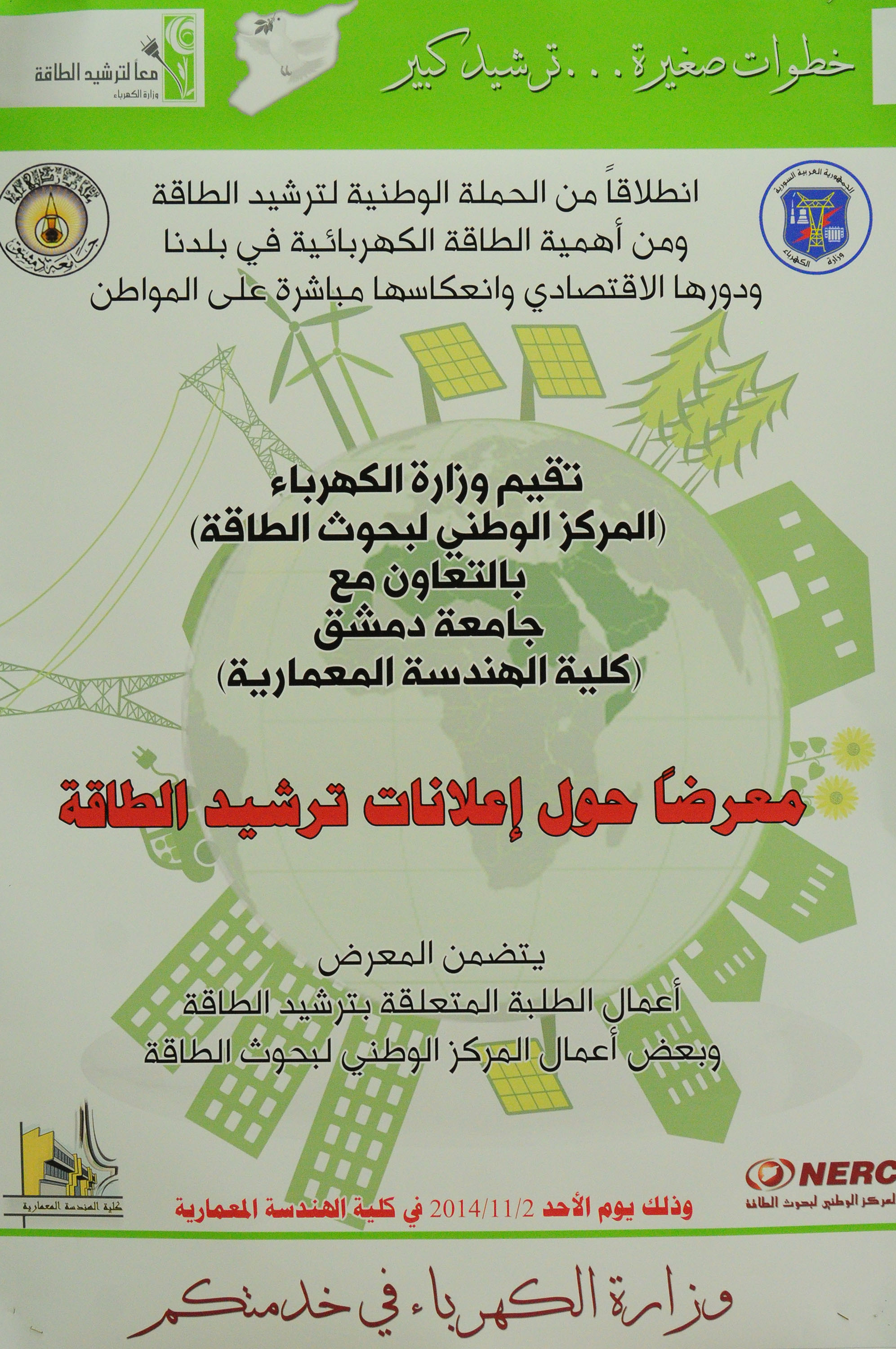 03/11/2014 D.H./M.Ch. Atelier de travail et exposition sur la rationalisation de l'énergie à la Faculté d'architecture de l’Université de Damas 2014-11-03 dima Share tweet