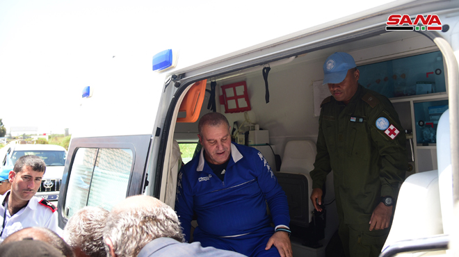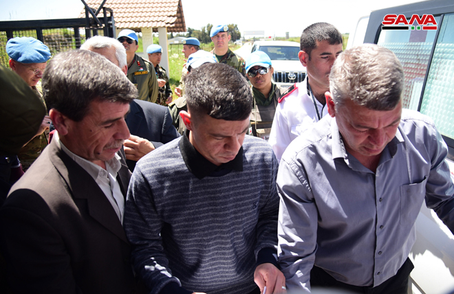 Arrivée des deux détenus libérés Zeidan Tawil et Ahmad Khamis au point de passage de Quneitra